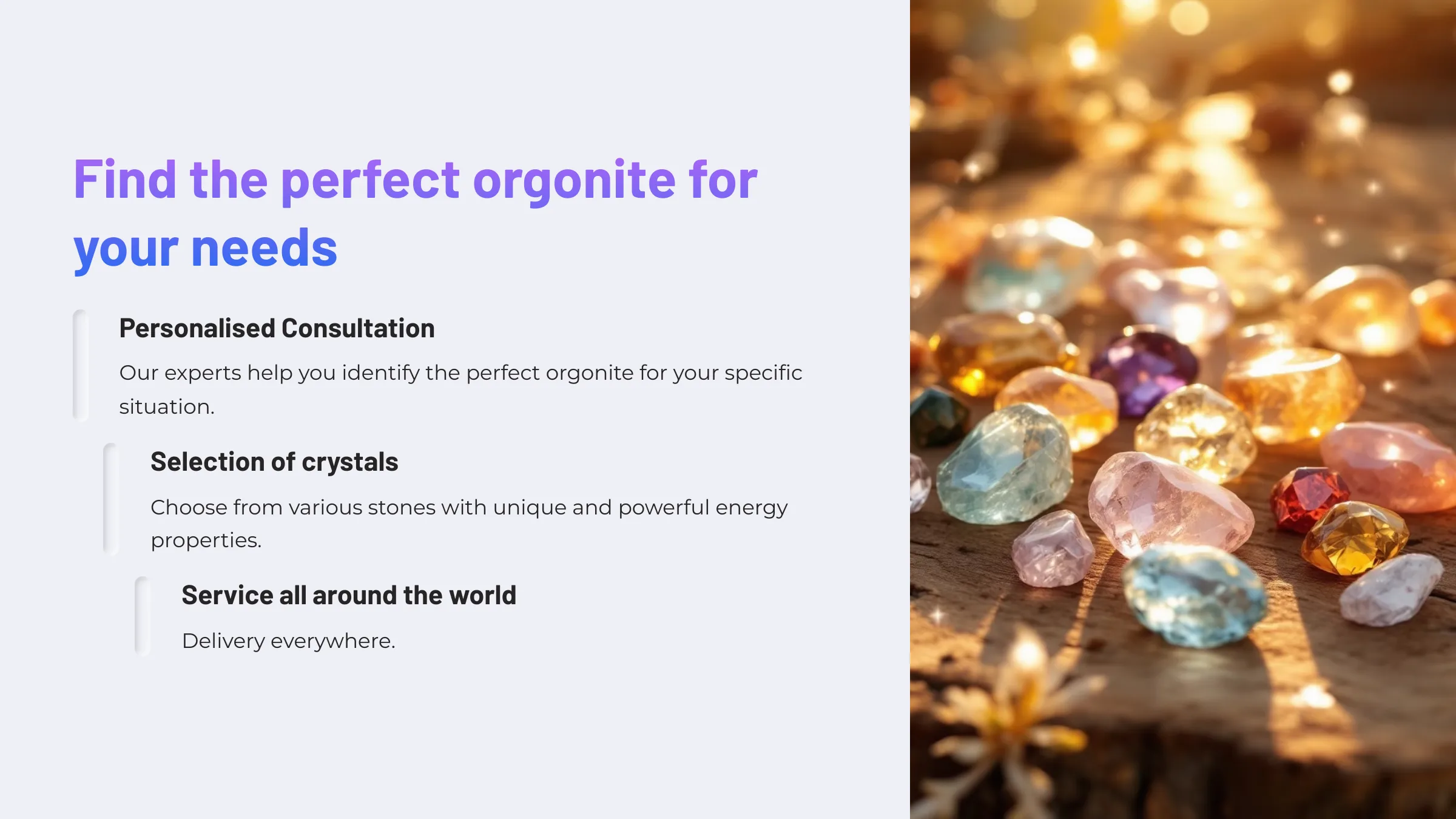Authentic Energy Harmonization Arrangements based on the principles of Don and Carol Ann Croft. With the pure energy of quartz, our orgonites will surround you with a bubble of happiness.