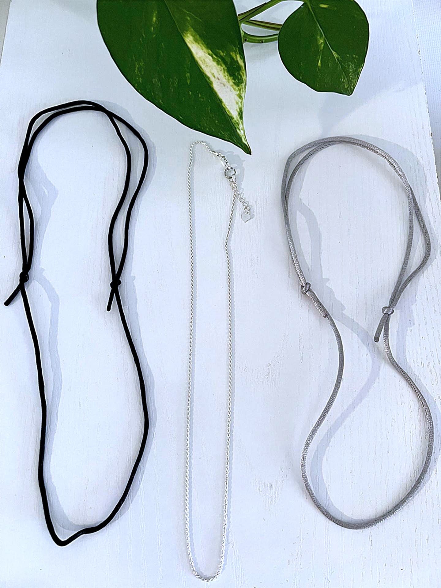 Cordon noir/gris: ajustable entre 14'' et 24''.